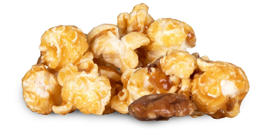 - Remove popcorn from oven. Scatter half the bacon and pecans over each sheet pan and then pour half the brown sugar syrup over each pan. Use a silicon spatula to combine syrup, popcorn, and nuts. Sprinkle popcorn with Himalayan salt.